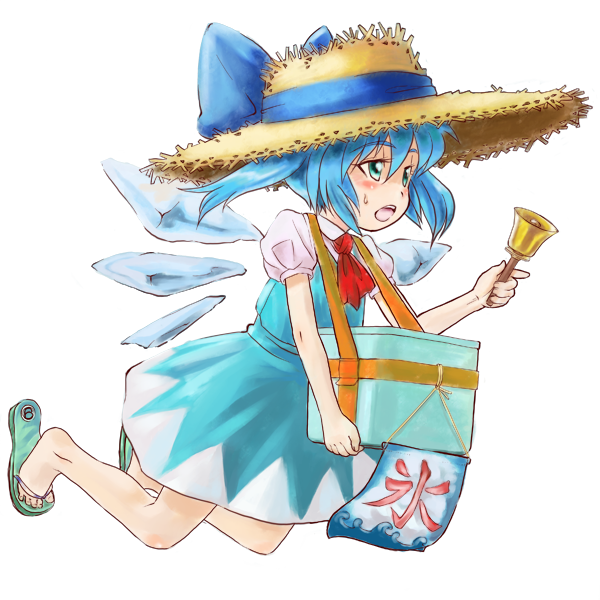 1girlalternate hairstyleascotbarefootbellblue dressblue eyesblue hairbowboxdressfemale focusflyingfull bodyhair bowhaticematching hair/eyessandalsshort hairsolostraw hatsun hatsweattransparent backgroundtwintailswings
