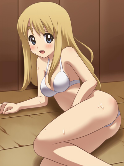 00s1girlarm supportassbikiniblonde hairblue eyesblushbody blushbrabreastsfemale focuslong hairlyingon sidepantiessmilesolosweatswimsuitunderwearwhite bikiniwhite brawhite panties
