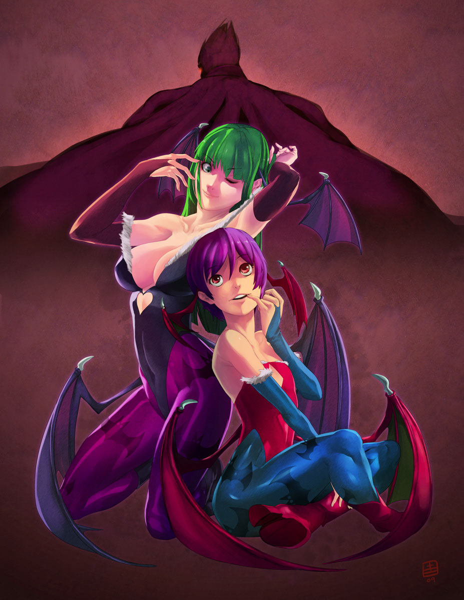 silamizu (white water), flandre scarlet, remilia scarlet, touhou, 2girls, bat wings, female focus, hat, multiple girls, red eyes, siblings, sisters, wings