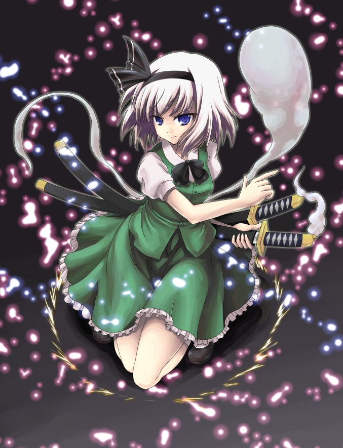 1girlblue eyesfemale focusghosthair ribbonhitodamakatanaribbonsheathsheathedshort hairsoloswordweapon