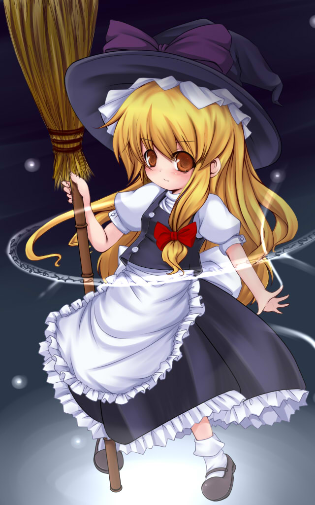1girlblonde hairbroomfemale focusfull bodygradient backgroundhatlong hairribbonskirtsolowhite backgroundwitchwitch hatyellow eyes
