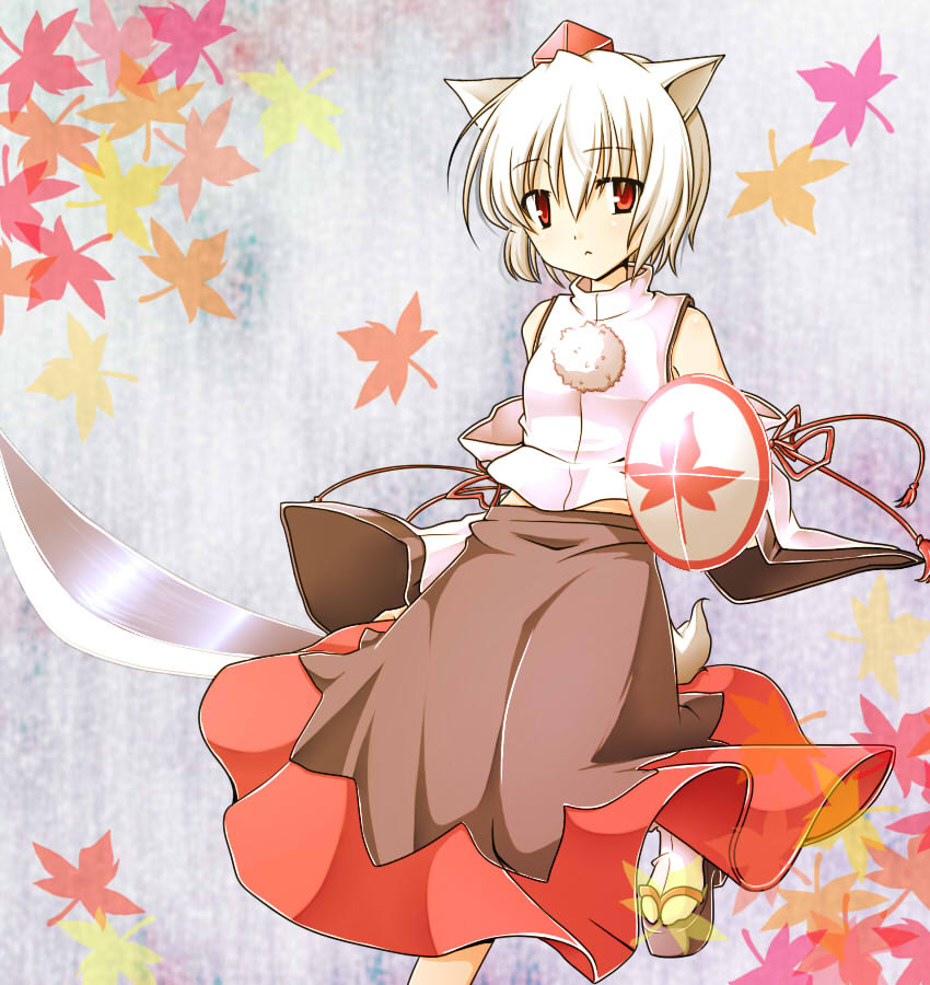 1girlanimal earsdetached sleevesfemale focusgetahatred eyesshieldshort hairsoloswordtailtokin hatweaponwhite hairwolf earswolf tail