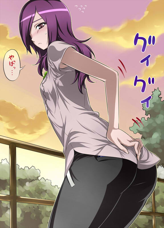 00s1girlarmpitsassblushcasualfemale focusfrom belowgrabbing own asshair over one eyelooking backpantspantyhosepurple hairshirtsolosweatdropt-shirt