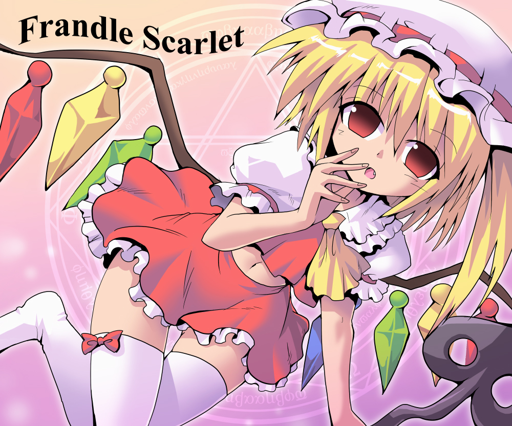 1girlblonde haircharacter namefangfemale focusgradient backgroundhatmagic circlenavelred eyesskirtsolothighhighswings