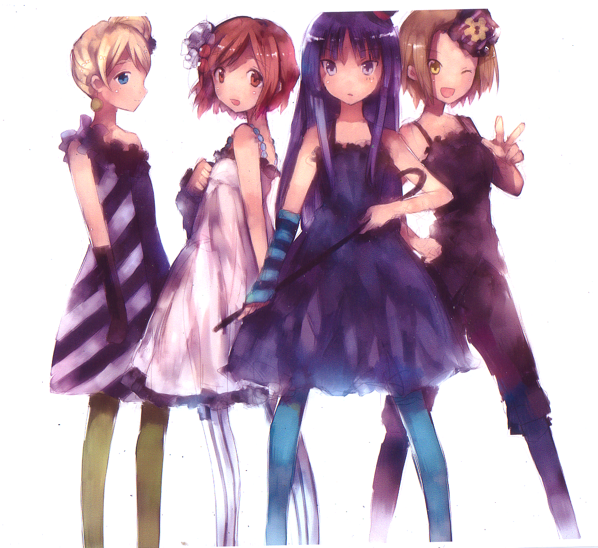 00s4girlsaqua pantyhoseblack eyesblack hairblue eyesbrown eyesbrown haircanedressfacepaintfingerless glovesglovesgreen pantyhosehatho-kago tea timelong hairmultiple girlsone eye closedpantyhoseshort hairstriped clothesstriped pantyhosetaremetop hattsurimevvertical-striped clothesvertical-striped pantyhosewink