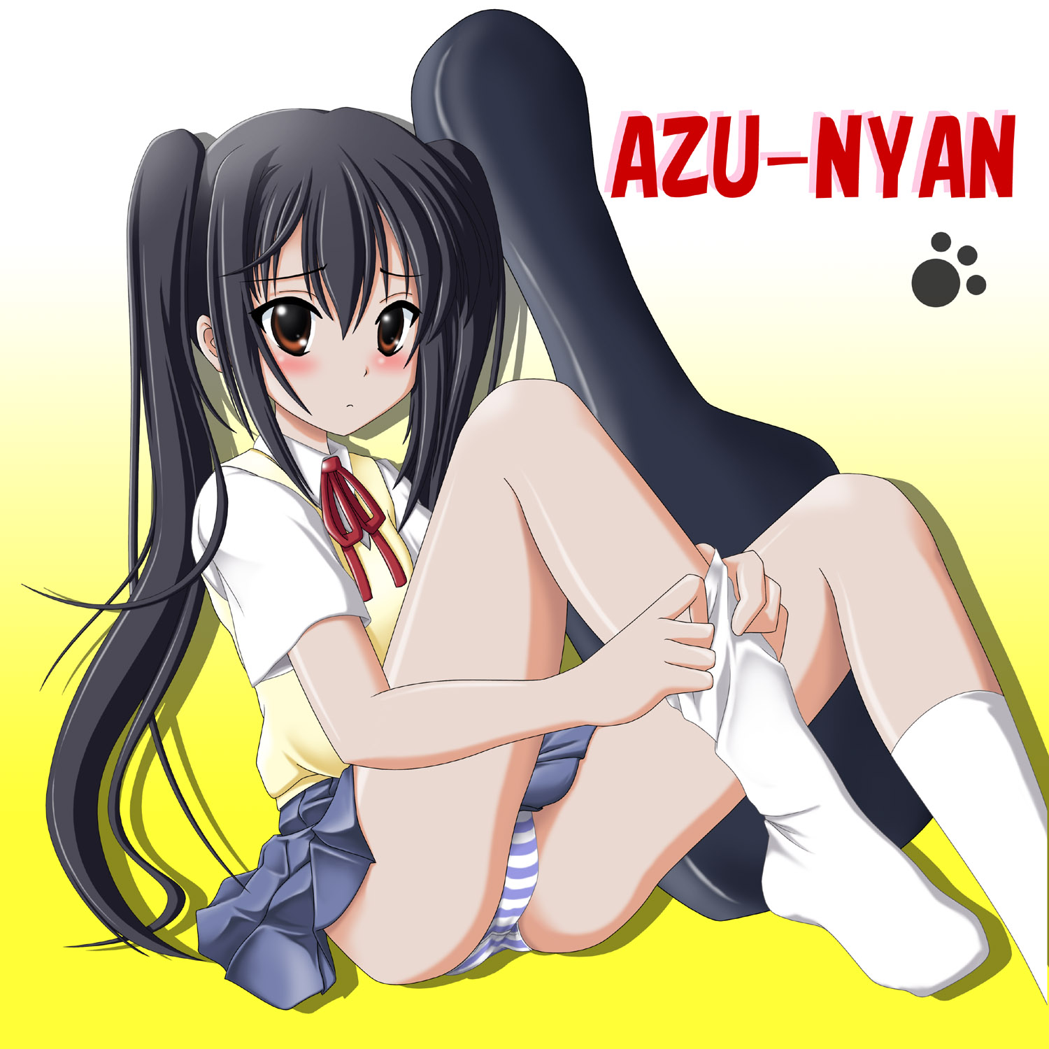 00s1girlblack hairblushbrown eyesfemale focusgradient backgroundguitar caseinstrumentinstrument caselong hairneck ribbonpantiespaw printribbonschool uniformsittingskirtsockssolostriped clothesstriped pantiestwintailsunderwear