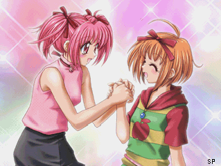 00s2girlsahogeapplebellbowclosed eyescollarfemale focusfoodfruithair bowhair ribbonholding handshoodhoodiejingle bellmultiple girlsorange hairpink eyespink hairribbonshort hairsleevelesssmilesparkle