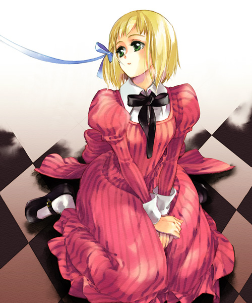 00s1girlblonde hairdressfemale focusgreen eyeshair ribbonmary janespuffy sleevesribbonshoesshort hairsolovictorian