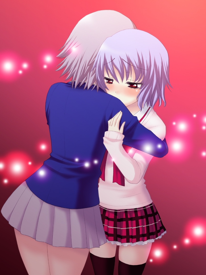 2girlsalternate costumefemale focusgradient backgroundminiskirtmultiple girlsschool uniformskirtthighhighsthighszettai ryouiki