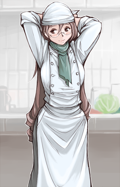 00s1girlaged upapronarms behind headarms upascotbandanablushbreastsbrown eyesbrown haircabbagecasualcheffemale focusglassesheadscarfkitchenlarge breastslong hairscarfsleeves rolled upsmilesolovery long hairwhite headscarf