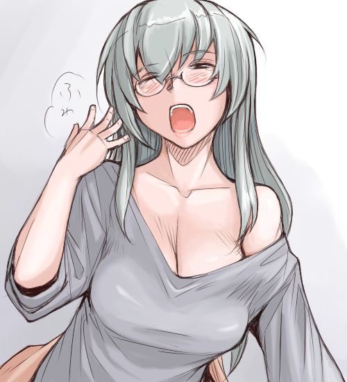 00s1girlaged upbare shouldersbreastscasualcleavagefemale focusglasseslarge breastsoff shoulderone eye closedopen mouthsolowinkyawning