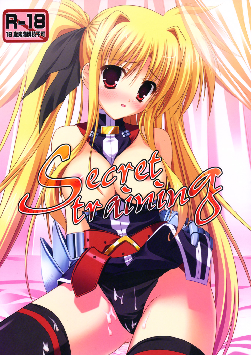 00s1girlbedblack thighhighsblonde hairblushbreastsbreasts outcovercumfemale focushair ornamenthair ribbonindoorslarge breastslong hairlooking at viewernipplesno braon bedparted lipsred eyesribbonsittingsolothighhighstwintailsvery long hair