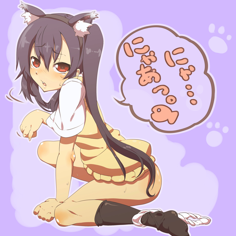 00s1girlanimal earsblack hairbottomlesscat earscat girlfemale focuskneelinglong hairnyanpantiespanties around legpaw posered eyesschool uniformsolosweater vesttwintailsunderwear