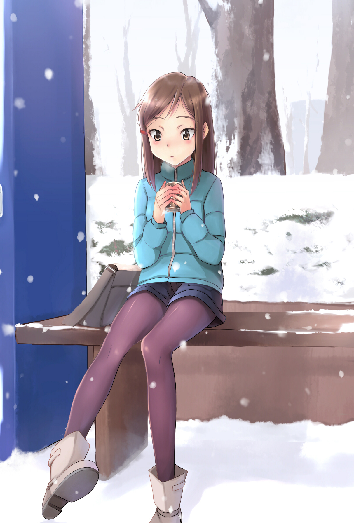 00s1girlbagblushbootsbrown eyesbrown haircanfemale focuslegslong hairpantyhosepantyhose under shortsshortssittingsnowsolo