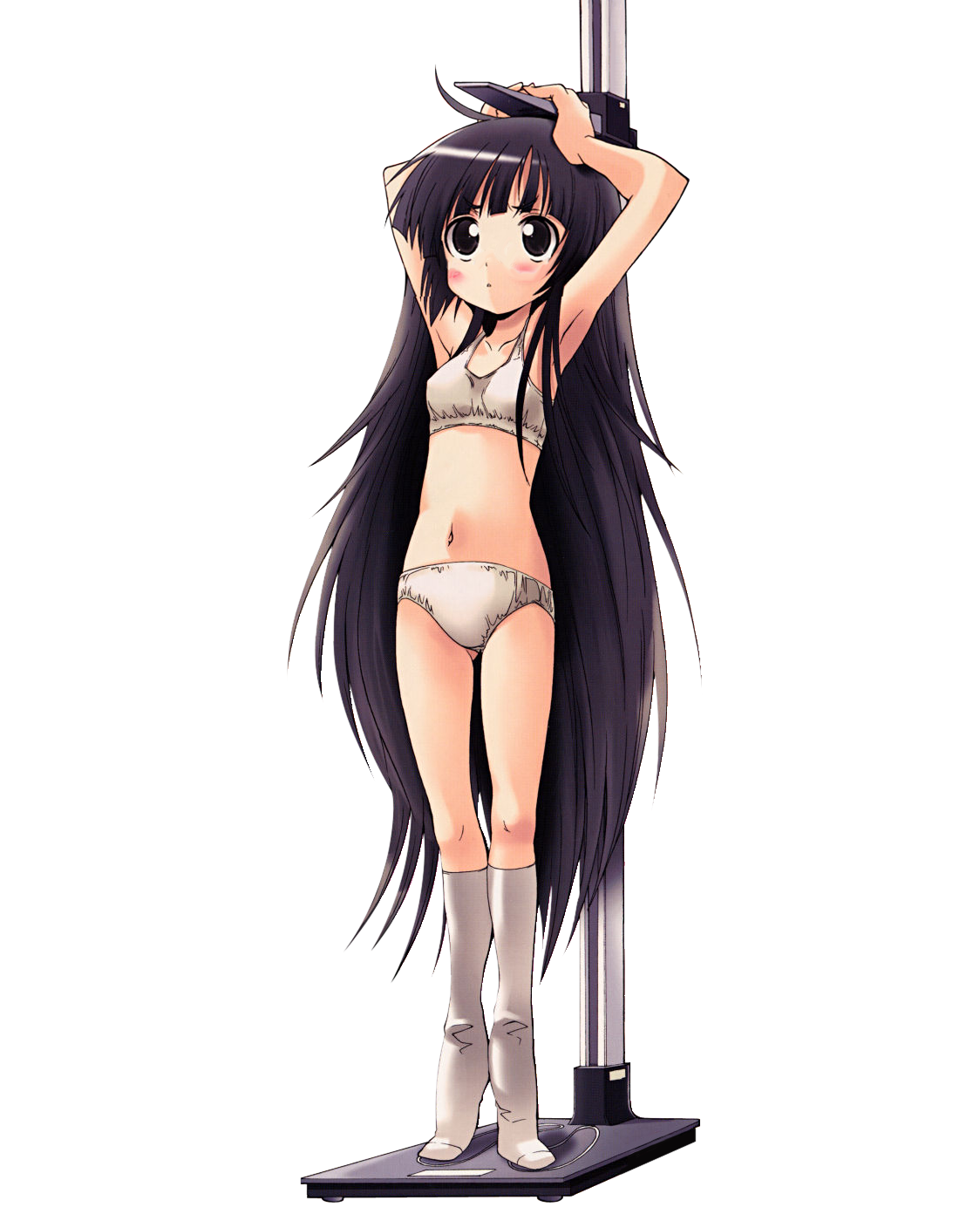 1girlblack hairblushbrabrown eyesfemale focusflat chestfull bodylingerielong hairnavelpantiessockssolotransparent backgroundunderwearunderwear onlyvery long hairwhite socks