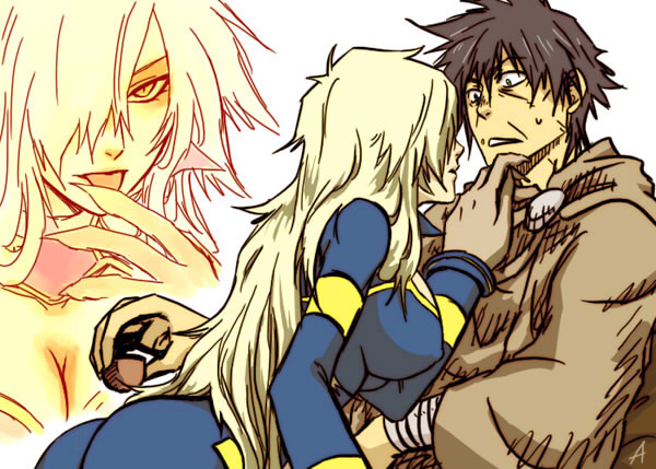 00s1boy1girlassblack hairblonde hairbreastsclawscleavagecovered erect nipplescupgenderswaphair over one eyeimpossible clotheslarge breastsleaning forwardlickinglong hairnaughty faceoldold manshort hairteacuptongue