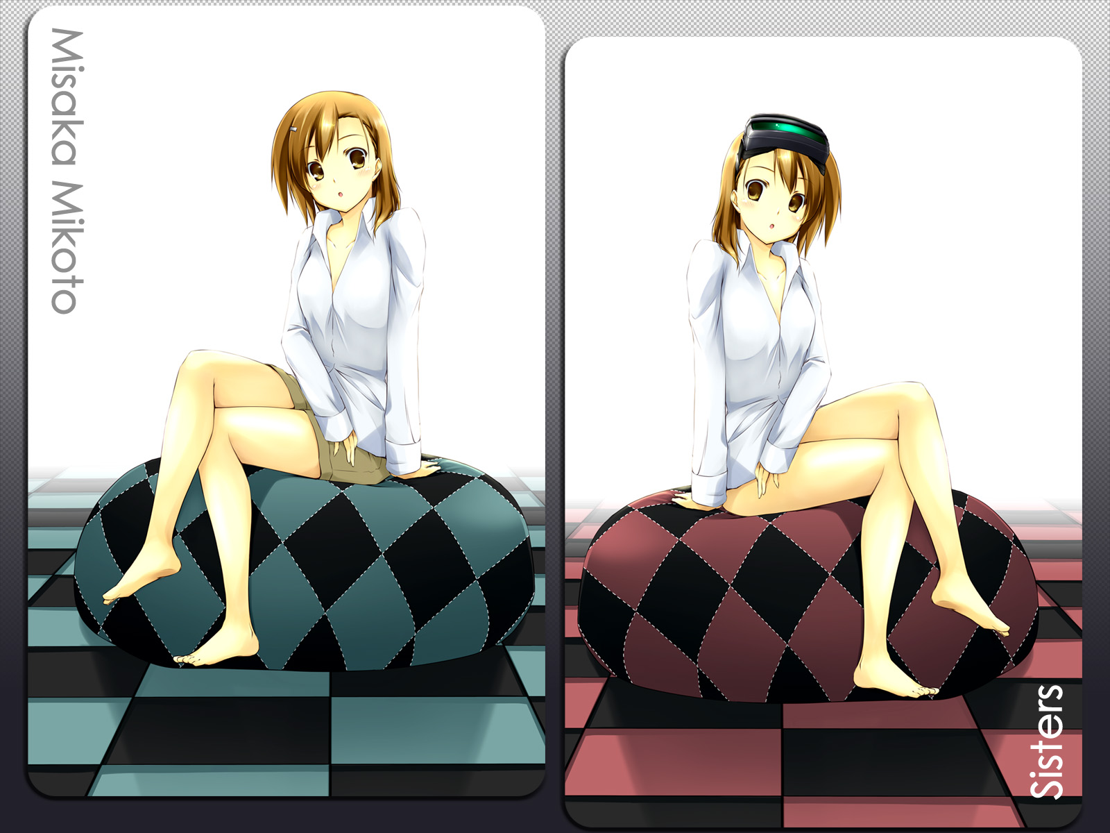 00s2girlsbarefootbrown eyesbrown haircrossed legsfeethair ornamenthaircliphead-mounted displaymultiple girlsshirtsittingwhite shirt