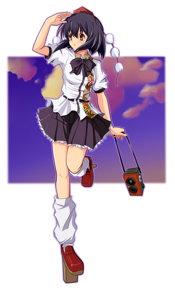 1girlblack haircamerafemale focusgetahatloose socksred eyesskirtsockssolotengu-getatokin hattwin-lens reflex camera