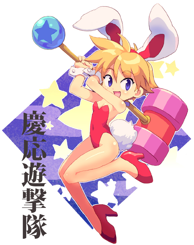 1girlanimal earsbare legsblonde hairblue eyescopyright namefake animal earsfemale focushigh heelslegsmalletplayboy bunnyrabbit earsshoesshort hairsolo