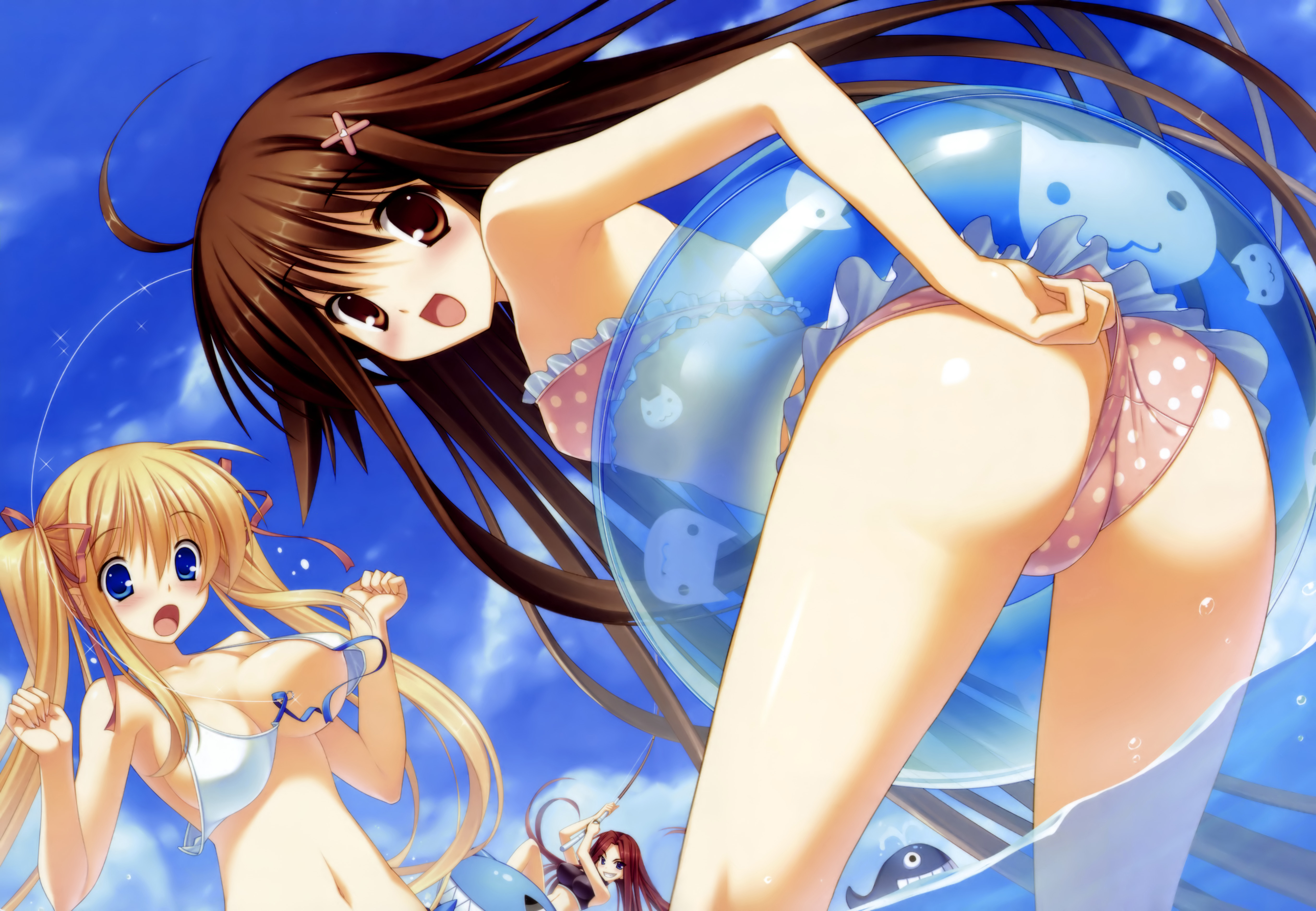 3girlsadjusting clothesadjusting swimsuitbeachbikiniblonde hairblue eyesbrown eyesbrown hairdaydutch anglefishingflat chestfrilled bikinifrillsfrom behindinnertubelolimultiple girlsnaveloutdoorspolka dotpolka dot bikinipolka dot swimsuitred hairsharksubmergedswim ringswimsuittwintailswadingwardrobe malfunctionwaterwedgiewhale