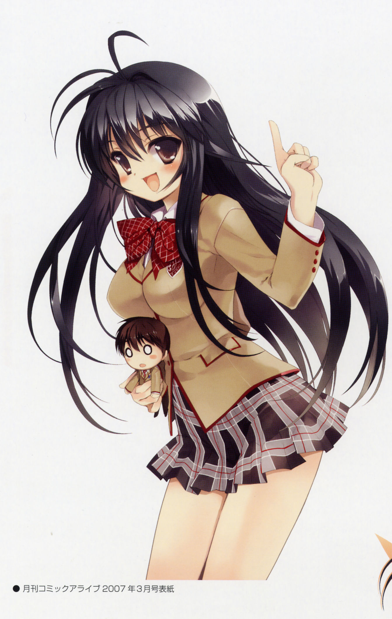 00s1girlantenna hairblack hairblazerblushbowbowtiebreastsbrown eyesdollfemale focusimpossible clothesimpossible shirtjacketlarge breastslong hairo oopen mouthplaid clothesplaid skirtpointingpurple hairschool uniformshirtskirtsmilesolowhite background