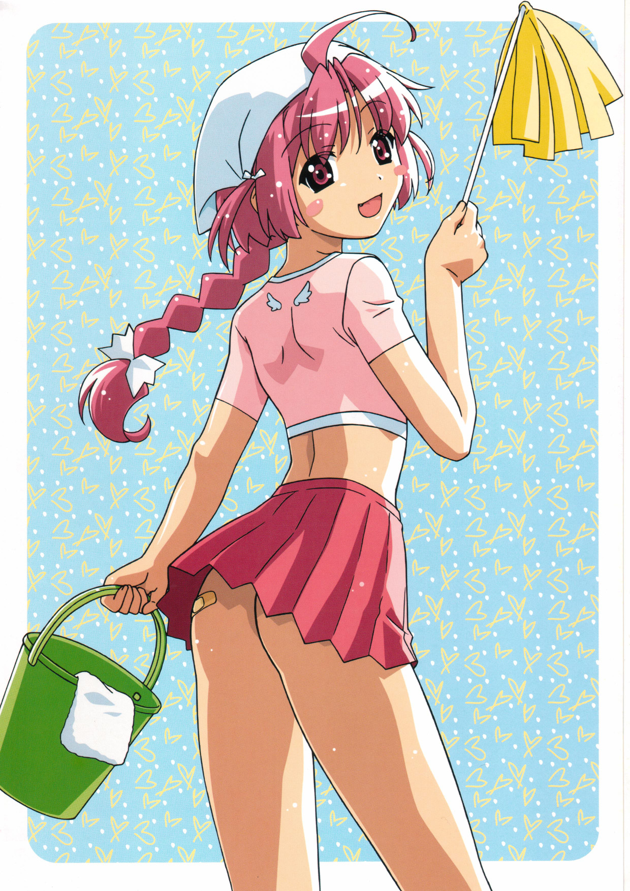 :d00s1girlahogeassbackbandaidblushblush stickersbraidbucketbutt crackcleaningcleaning ragcowboy shotdusterfangfrom behindfrom sidehappyheadscarflong hairlooking at viewerlooking backmidriffminiskirtno pantiesopen mouthoutside borderpink hairpleated skirtpurple eyesred skirtshort sleevessingle braidskirtsmilesoloupskirtwing print