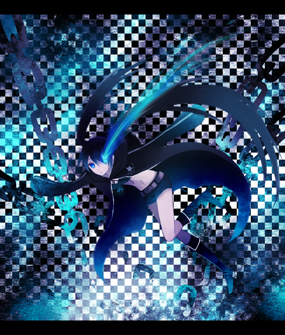 10sbikinibikini top onlyblack hairblue eyesbootscapechainglowingglowing eyesscarshortssoloswimsuittwintails