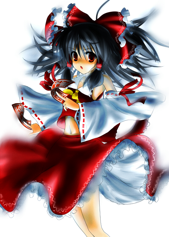 sakayaki (burning soul), furude rika, hanyuu, higurashi no naku koro ni, 00s, 2girls, bug, butterfly, flower, hakama, hakama skirt, insect, japanese clothes, miko, multiple girls, red flower, red hakama, skirt, spider lily