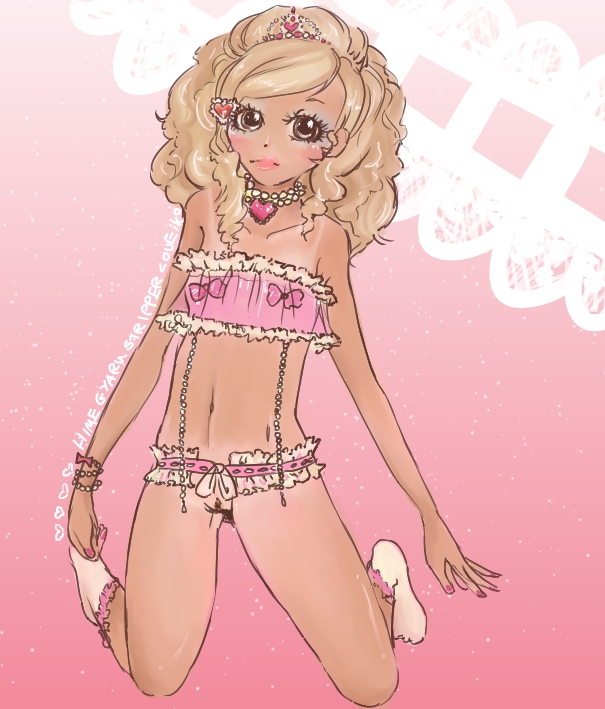 blonde haircrownflat chestfrillsgangurogyaruhime gyarujewelrylacelingerielolinecklacenudepubic stubblepussysockssolotantanlineuncensoredunderwear