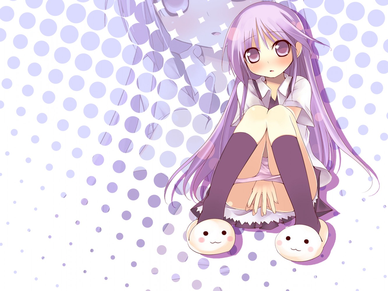 1boyblushblush stickerscrossdressingkneehighslong hairpantiespanty pullpolka dot backgroundpurple eyespurple hairshort sleevessittingsolotrapunderwearwide sleeveszoom layer
