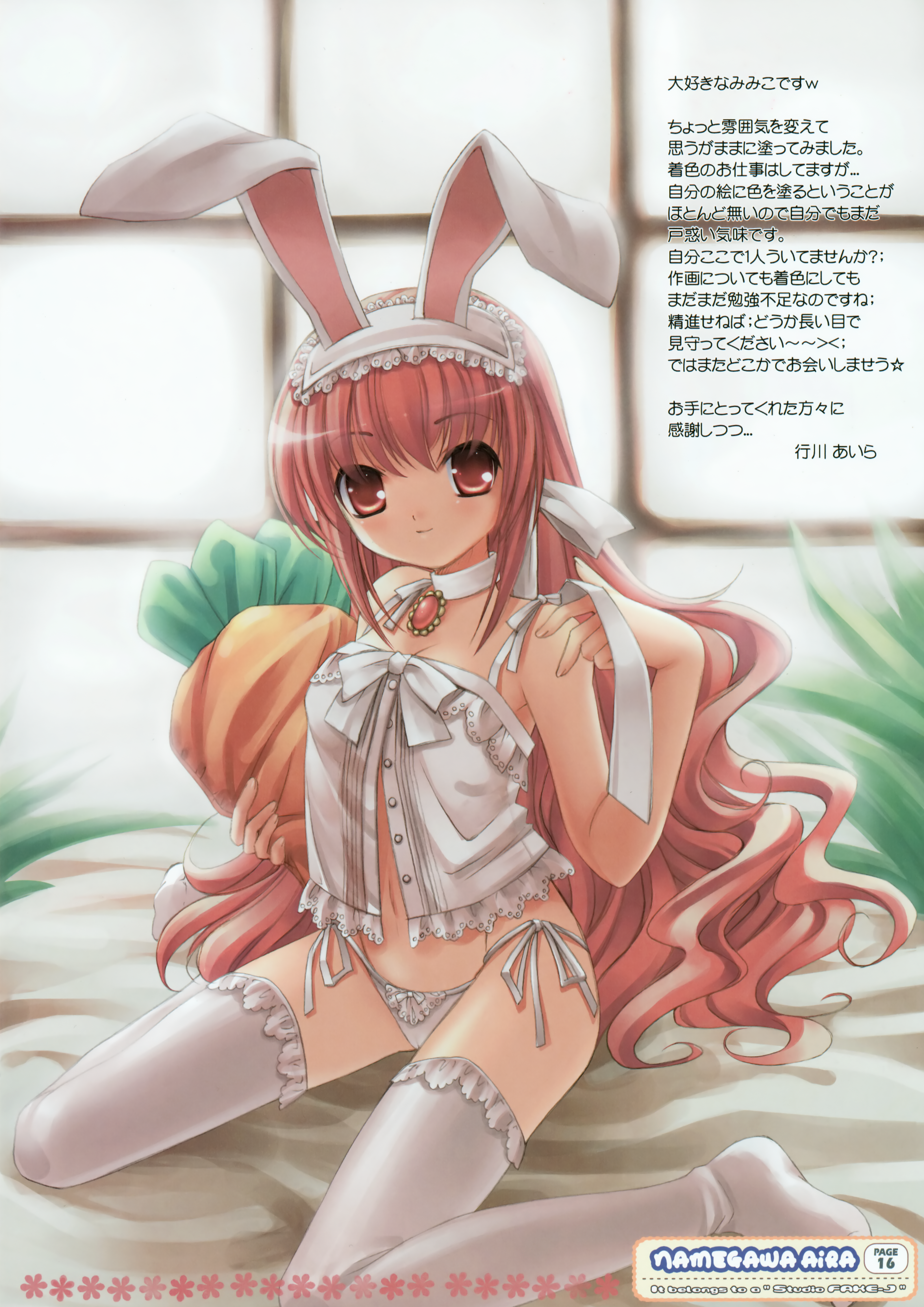 animal earsbustiercamisolechokerfeetflat chesthairbandheadbandkneelinglingerielolita hairbandmidriffnavelpantiespink eyespink hairrabbit earsside-tie pantiessolothighhighsunderwear