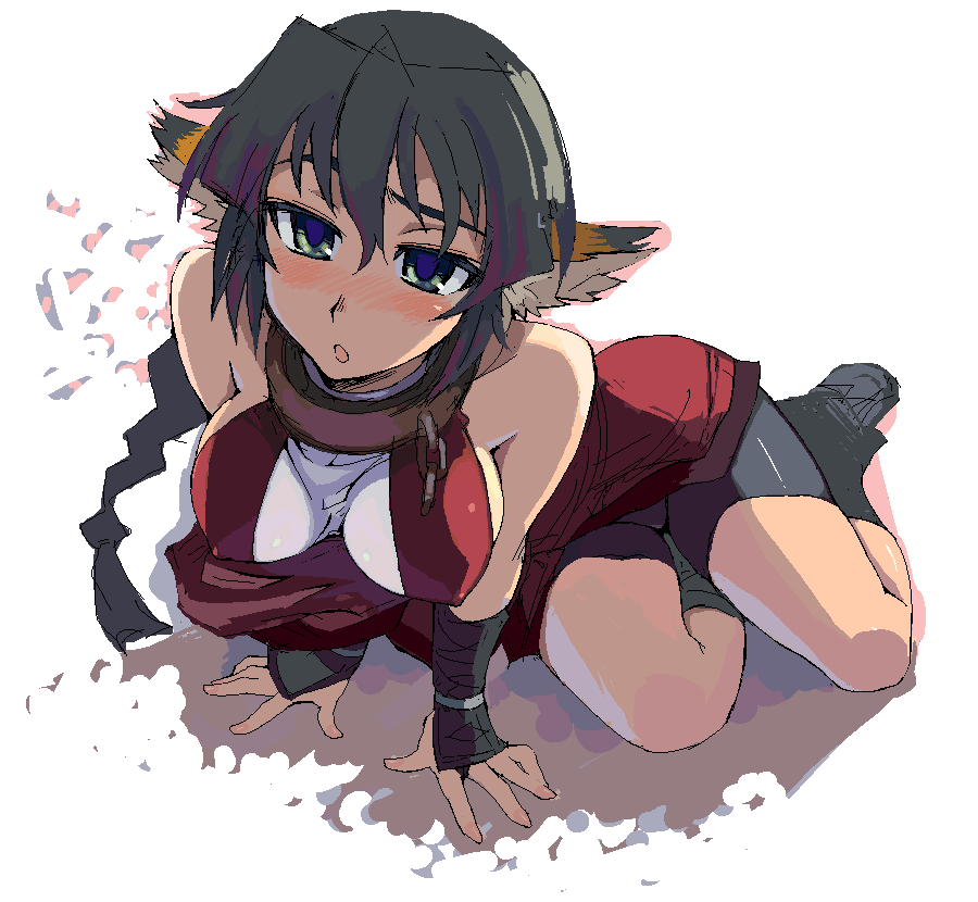 :o00s1girlanimal earsbike shortsblushbraidbreastscollarcovered erect nipplesfemale focusgreen eyeslong hairoekakisolo