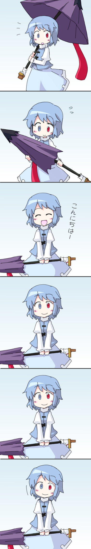 :d1boy1girlblue hairclosed eyesclosed umbrellacomicfemale focusgetahead tiltheterochromiakarakasa obakeopen mouthsalutesmileumbrella