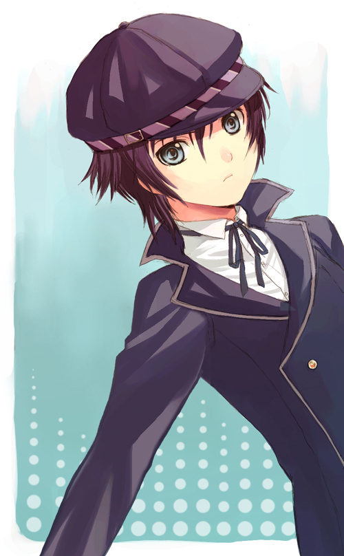 1girlandrogynousblue eyesblue hairdouble-breastedfemale focushatmatching hair/eyesnewsboy capreverse trapschool uniformshort hairsolo