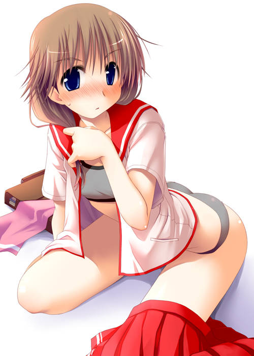 00s1girlbagblue eyesblushbrabrown hairclothes pullfemale focusgrey bragrey pantiesleaning forwardlingerielong hairneckerchiefopen clothesopen shirtpantiespleated skirtschool bagschool uniformserafukushirtsittingskirtskirt pullsolosports braunderwearundressingwariza