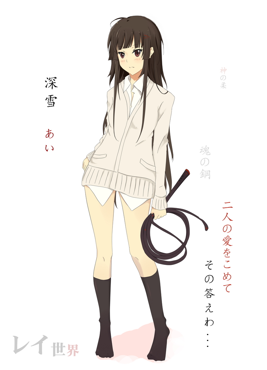 00s1girlblunt bangsbrown eyesbrown hairfemale focusfusionhair ornamenthaircliphime cutkneehighslegslong hairlook-alikesockssolosweater vestwhip