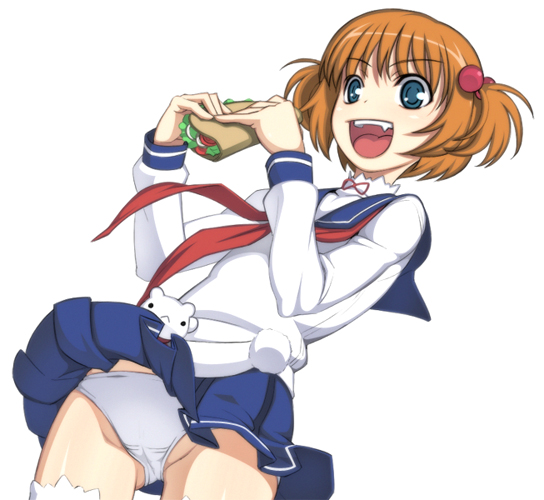00s1girlblue eyesbrown hairclothes liftfangfemale focushair bobbleshair ornamentopen mouthpantiespantyshotschool uniformserafukushort twintailssimple backgroundskirtskirt liftsolotacothighhighstwintailstwo side upunderwearupskirtwhite pantieswindwind lift