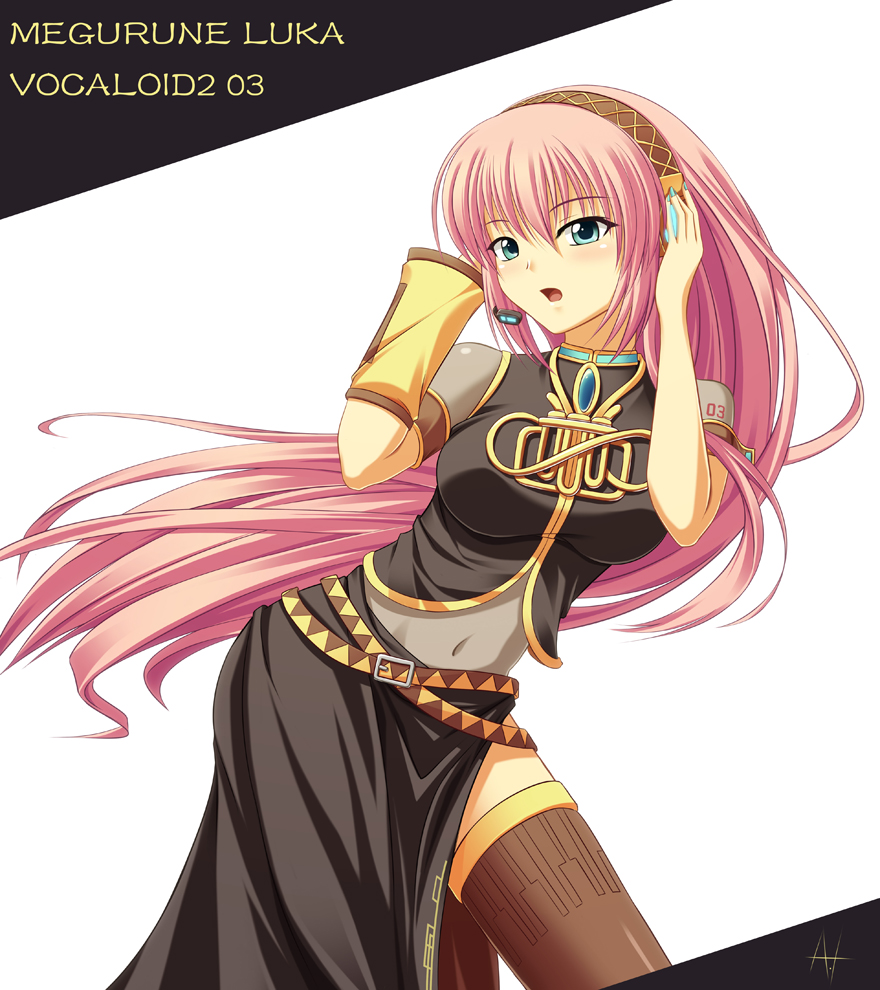 blue eyesdetached sleevesheadsetlong hairmidriffnavelpink hairside slitsolothighhighsvery long hair