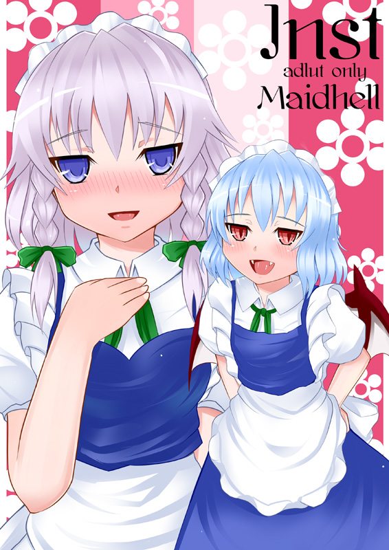 2girlsbat wingsblue eyesblue hairbraidcosplayfemale focusizayoi sakuya (cosplay)maid headdressmultiple girlsshort hairtwin braidswings