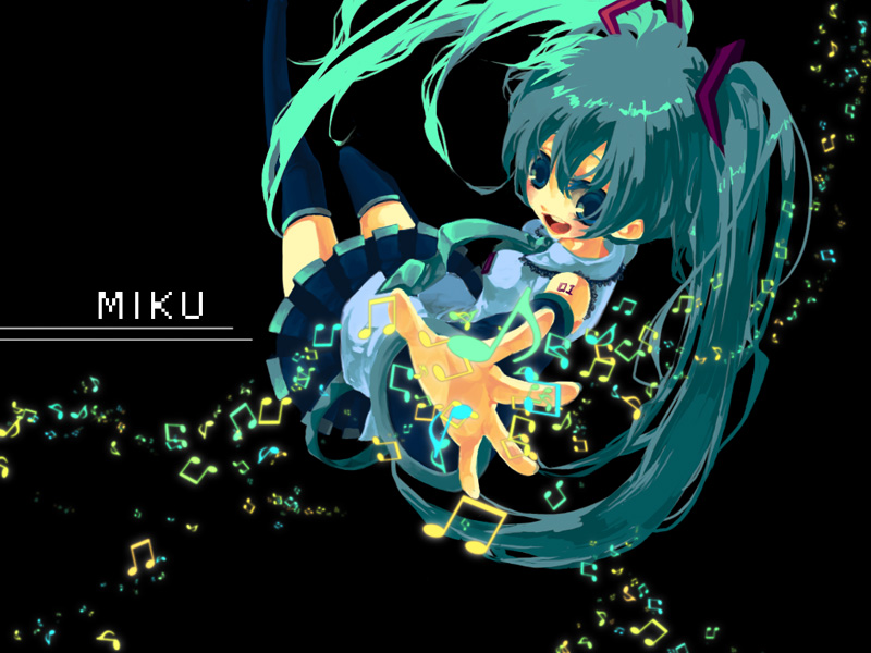 aqua eyesaqua hairdetached sleeveslong hairmusical notenecktieskirtsmilesolothighhighstwintailszettai ryouiki