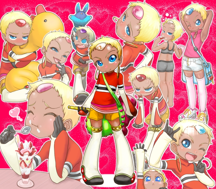 onigirikun, suzuki botan, tsumura tokiko, busou renkin, pastel chime, pastel chime continue, game cg, 1girl, armband, bed, blue hair, blush, bob cut, cosplay, female focus, hair ribbon, kneehighs, panties, parody, purple eyes, purple hair, ribbon, scar, scar on face, scar on nose, school uniform, serafuku, sitting, socks, solo, underwear, white panties