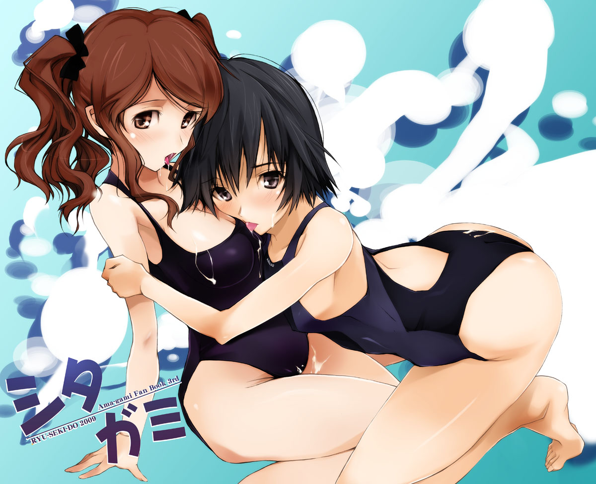 2girlsartistic errorblack hairbrown haircompetition swimsuitcumcum on bodyfacialhugmultiple girlsone-piece swimsuitsalivashort hairswimsuittonguetwintailsyuri