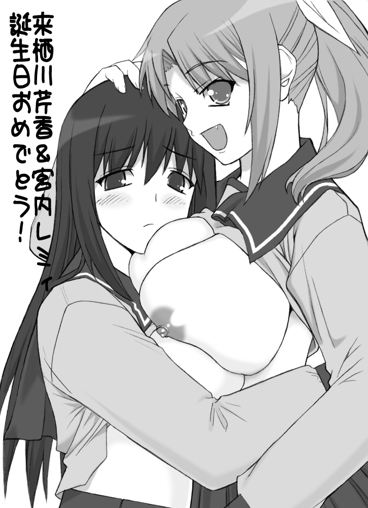 umemaru, flandre scarlet, kirisame marisa, touhou, highres, translated, 2girls, apron, blonde hair, bow, dress, female focus, hair bow, hair ornament, hug, long hair, multiple girls, no headwear, ponytail, red eyes, short hair, side ponytail, skirt, star (symbol), wings, wristband, yellow eyes, yuri