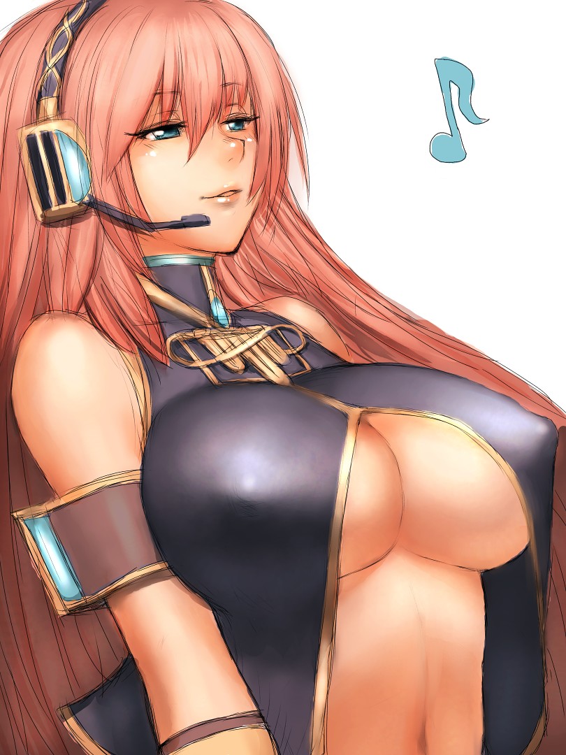 1girlbreastscovered erect nipplesfemale focusheadphonesheadsetlarge breastslong hairmusical notepink hairsketchsolounderboob