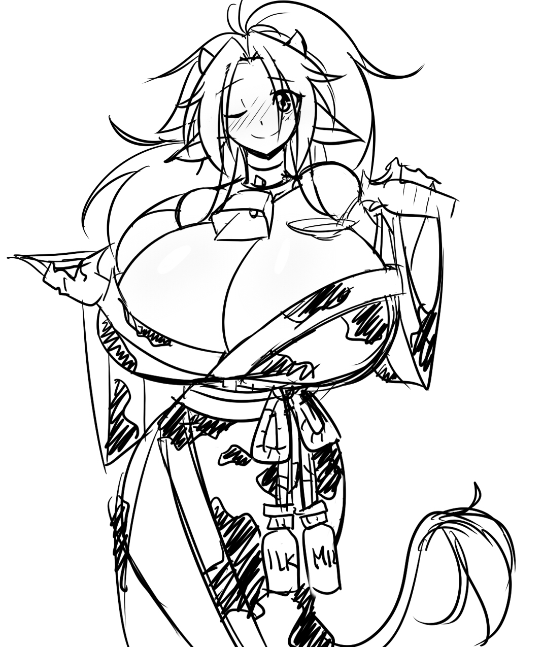 gunner-l, patti (lunar wing), lunar wing, 1girl, :d, armor, armpits, arms up, bandages, blue hair, blush, bracelet, breasts, choker, cloud, covered erect nipples, crop top, day, female focus, hairband, huge breasts, impossible clothes, impossible shirt, jewelry, midriff, navel, open mouth, outdoors, pleated skirt, red eyes, shirt, short hair, skirt, sky, smile, solo, standing, turtleneck