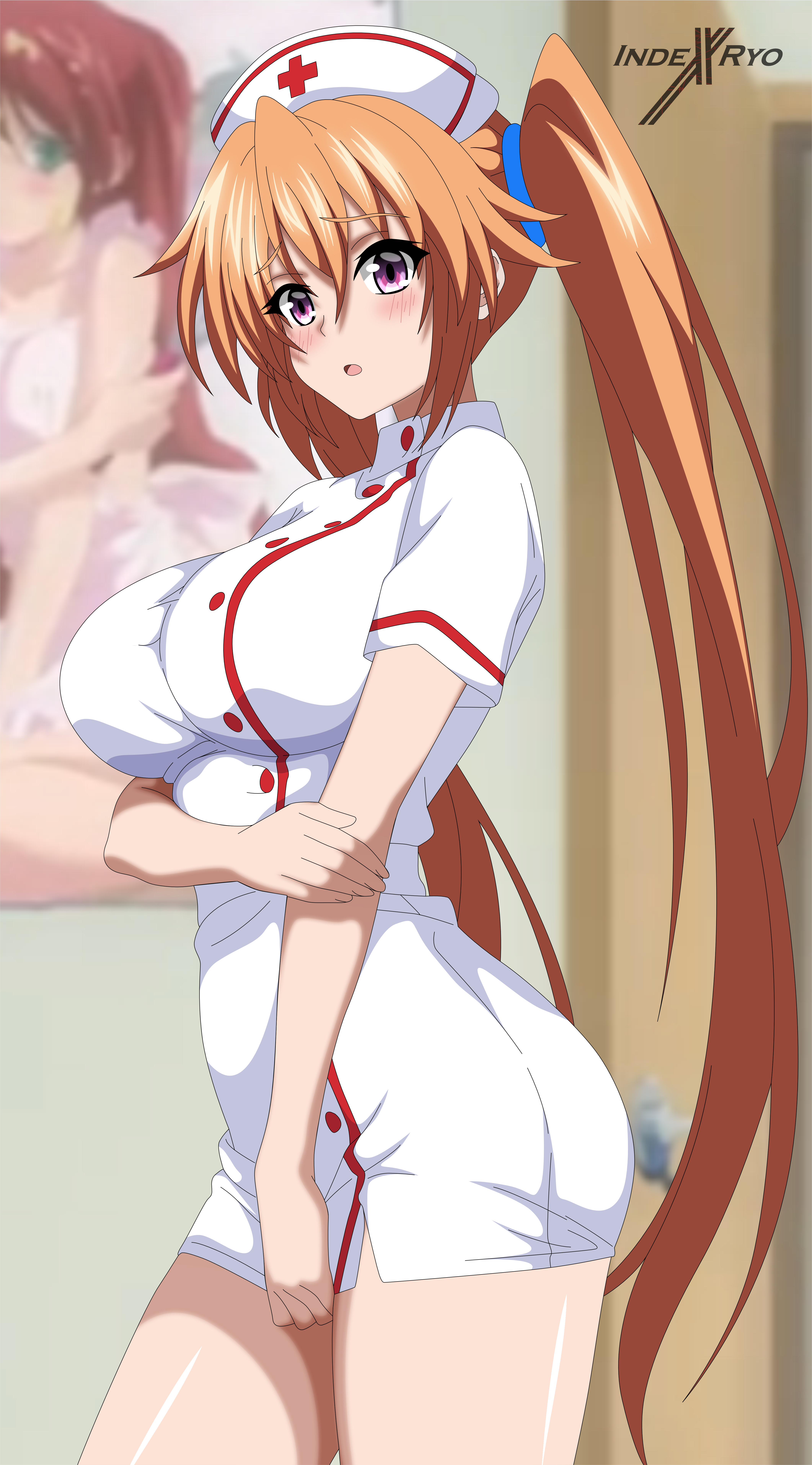 arm under breastsbig breastsblurryblurry backgroundblushblushingbreastsdressfemaleFlag for Deletionhatindexxryoindoorslarge breastslong hairlooking at viewernursenurse capnurse uniformorange hairposter (object)purple eyesroomsexy nurseshort sleevessolothick thighsthin waisttwintailsvery long hairwhite dress