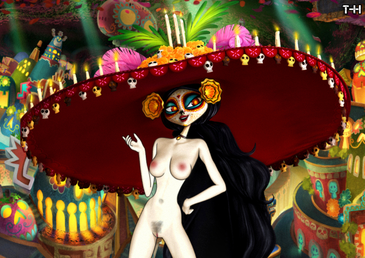 breastsbrown eyesbrown hairburning candlescandlescollarfeathersfingeringFlag for Deletionflowerhair flowerlong hairmakeupnecklacenipplesnudeorange eyespubic hairpussyskeletonskullsombrerovery long hairwhite candles