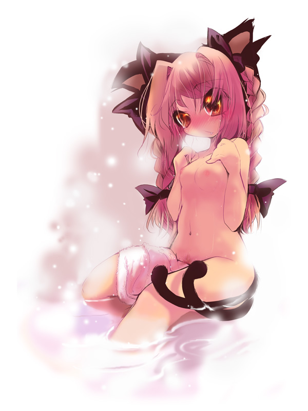 animal earsblushbraidbreastscat earscat tailFlag for Deletionflat chestlong hairnudepubic hairred eyessred hairribbonribbonstail