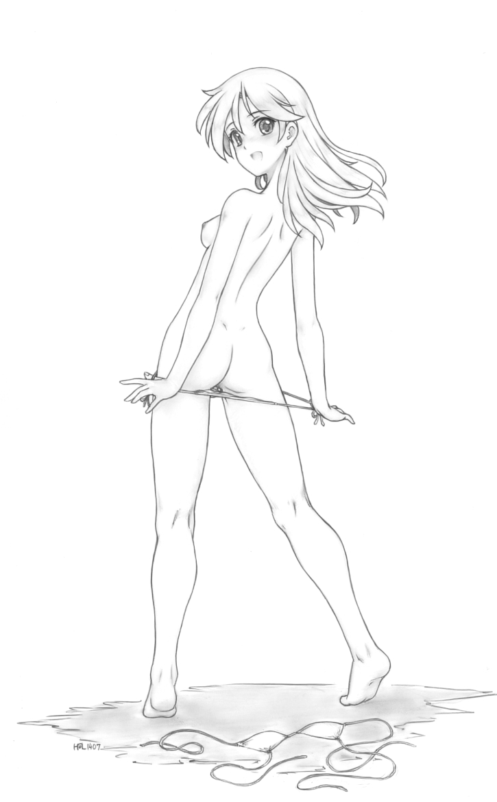 assbare backbarefootbikinibikini pullbikini top removedbreastsdimples of venusFlag for Deletionfrom behindfull bodygraphite (medium)looking at viewerlooking backnipplesopen mouthside-tie bikinisideboobsmilesolostandingswimsuittoplesstraditional mediaundressing