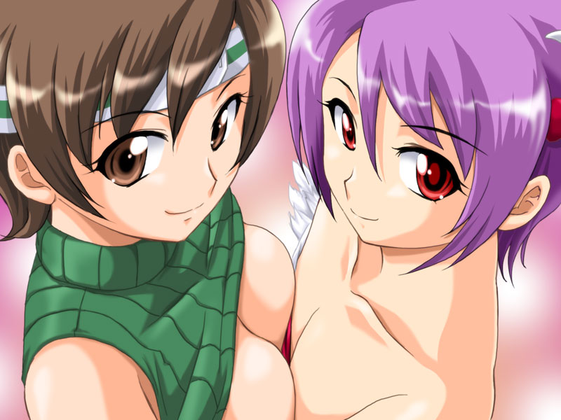 2girlsasymmetrical dockingbare shouldersbreast pressbreastsbrown eyesbrown hairdemon girlFlag for Deletionflat chestlooking at viewermedium breastsmultiple girlspurple hairred eyesshirt liftshort hairsleevelesssleeveless turtlenecksmilesuccubussymmetrical dockingturtleneck